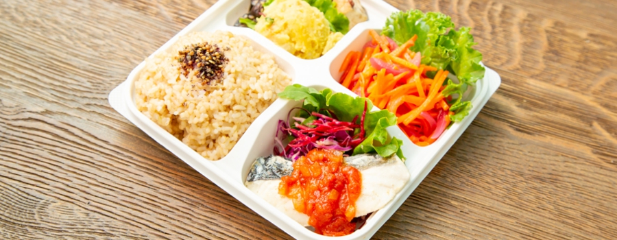 豆、海藻などをつかったお弁当の提供をさせていただいております。