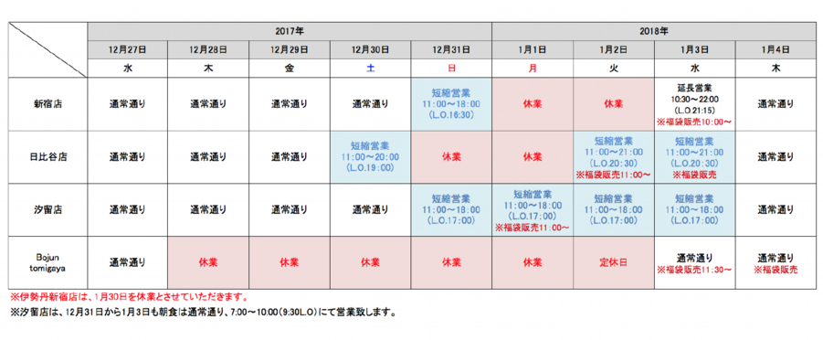 年末年始につきまして、上記の通り営業時間を変更させていただきます。なにとぞ、よろしくお願い申し上げます。