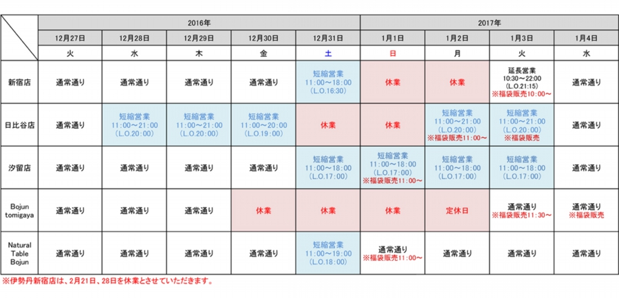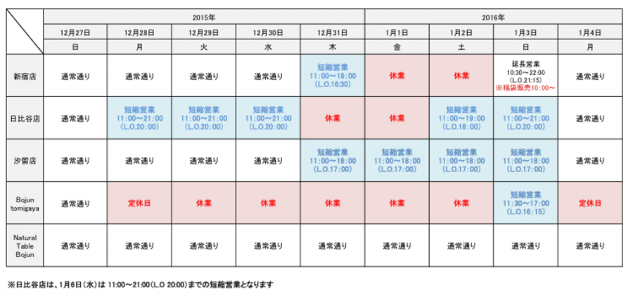 [ 2015.08.11 ] 店舗休業日のお知らせ( チャヤマクロビ伊勢丹新宿店・Bojun tomigaya )