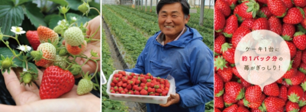 嘉山農園直送の苺がたっぷり。しっとりなめらかで軽い食感の、